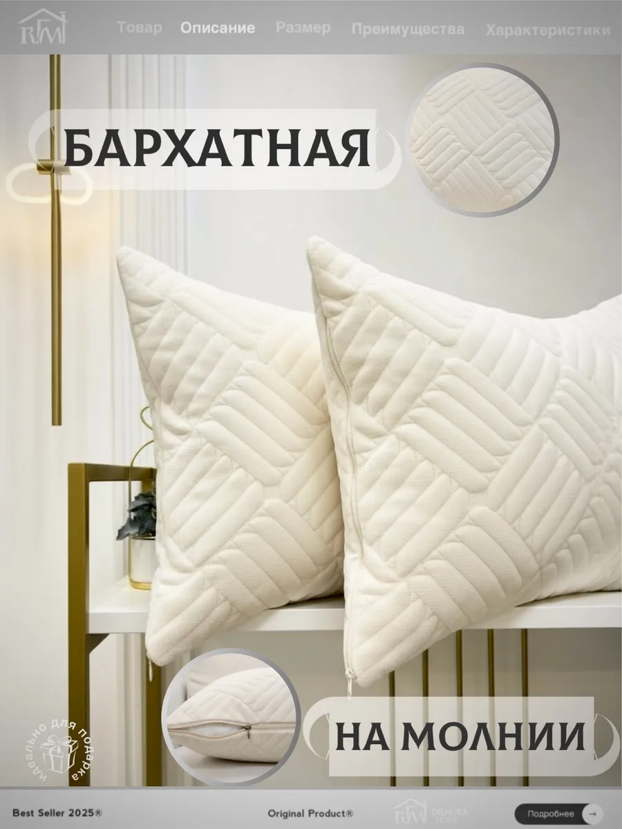 Преобразите интерьер с набором декоративных наволочек из мягкого бархатного велюра. Стёганая фактура с аккуратным рельефом создаёт утончённый объёмный рисунок, придавая наволочкам выразительность и визуальную глубину без излишней яркости.