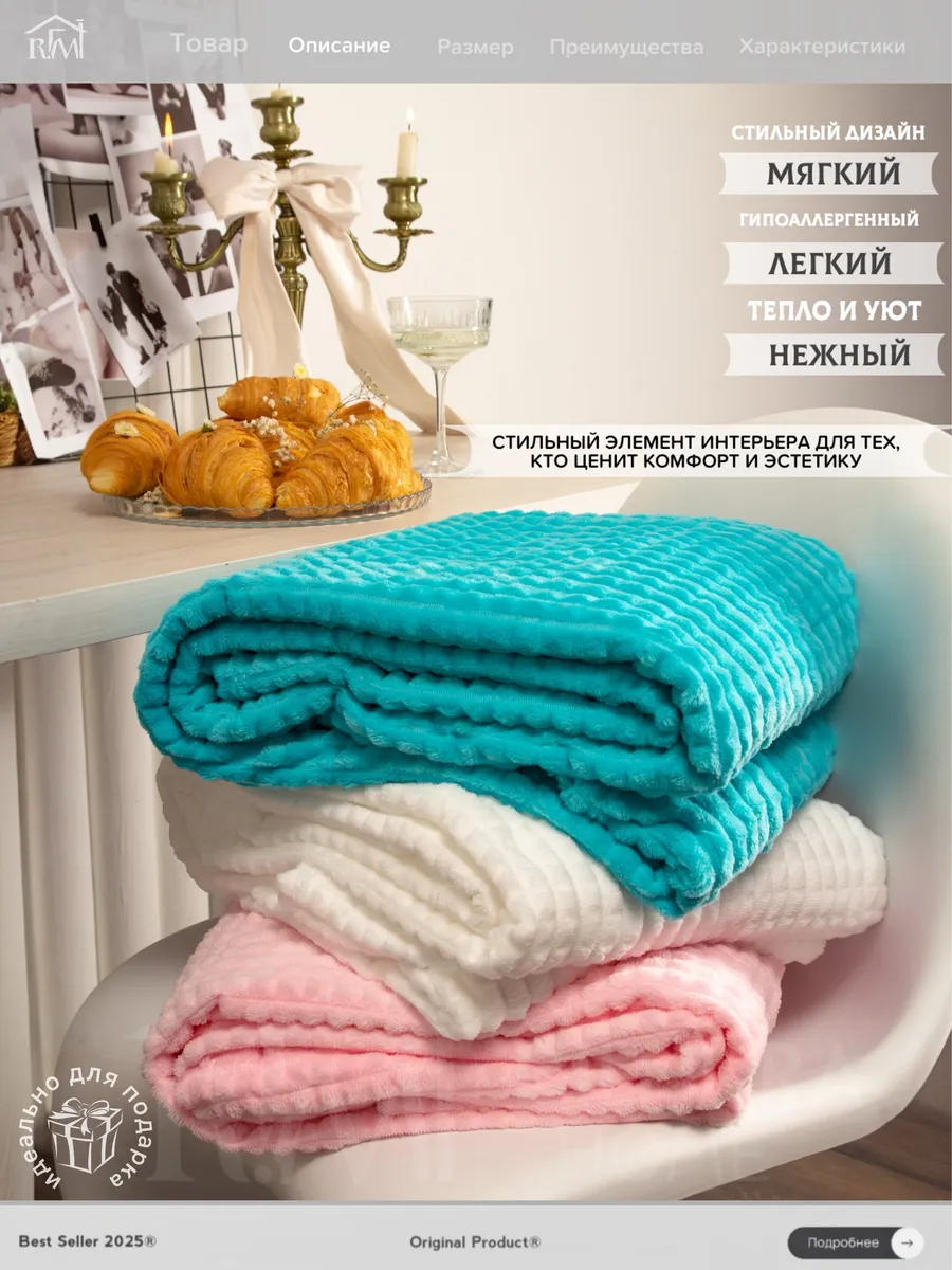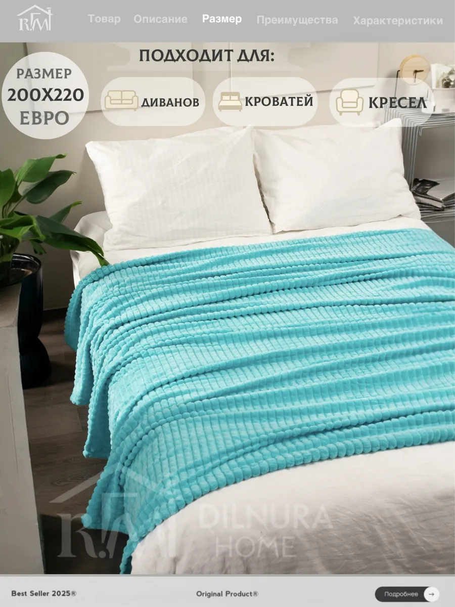 Плед евро 200х220 для дивана и кровати