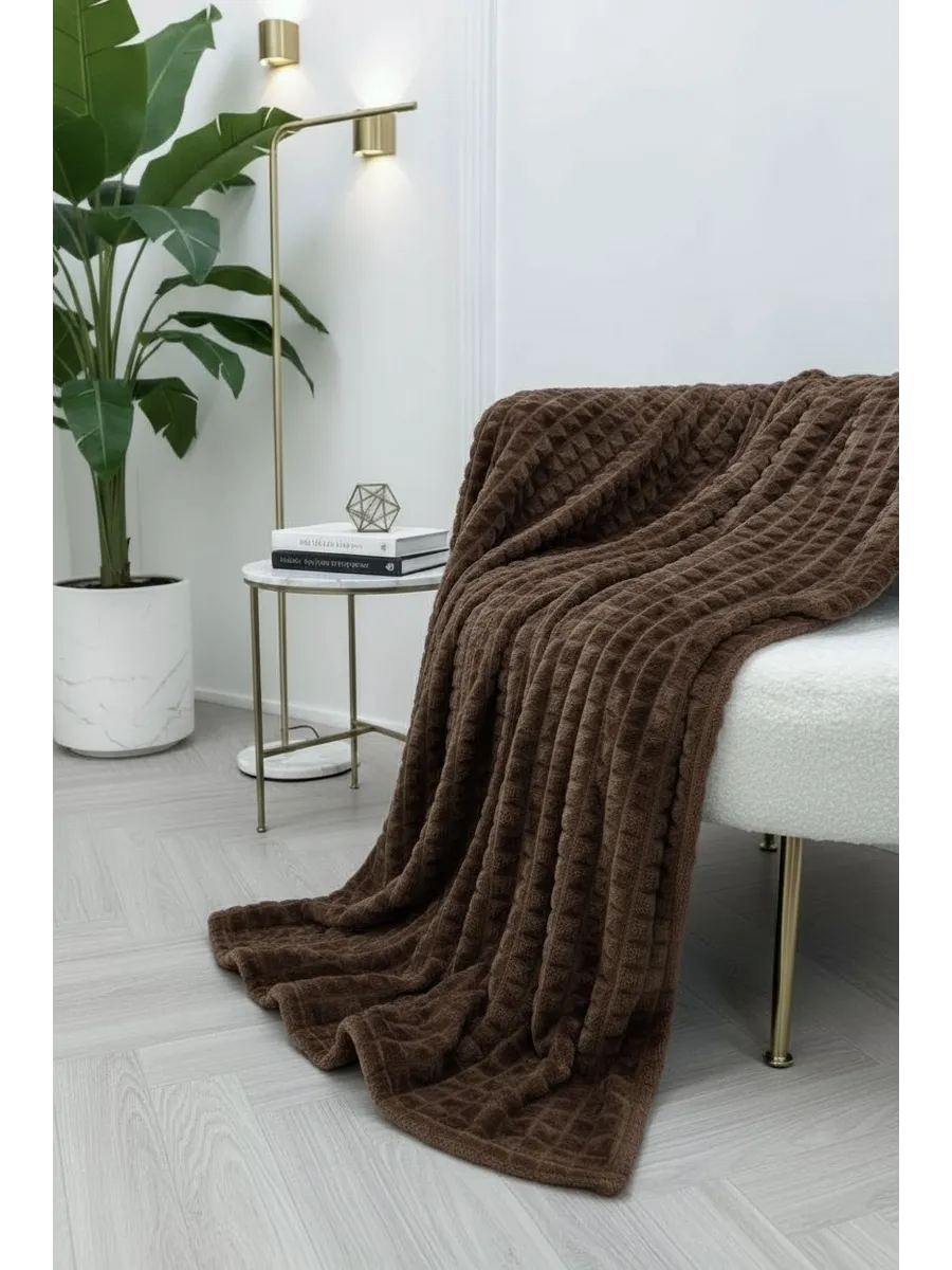 Такой теплый плед можно использовать как стильное покрывало в спальне или гостиной. Он гармонично впишется в любой интерьер — от классического до современного, добавляя уюта и мягкости.