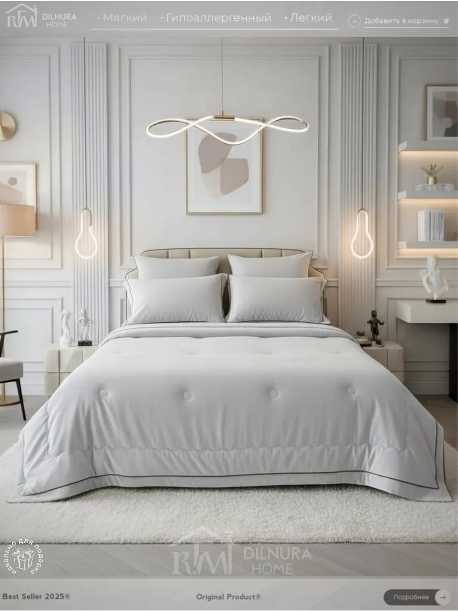 Прочный текстиль не линяет, не требует глажки и надолго сохраняет насыщенность цвета. Комплект идеально подойдёт тем, кто ищет качественное постельное бельё с продуманным наполнением, премиальной текстурой и полноценной комплектацией.
