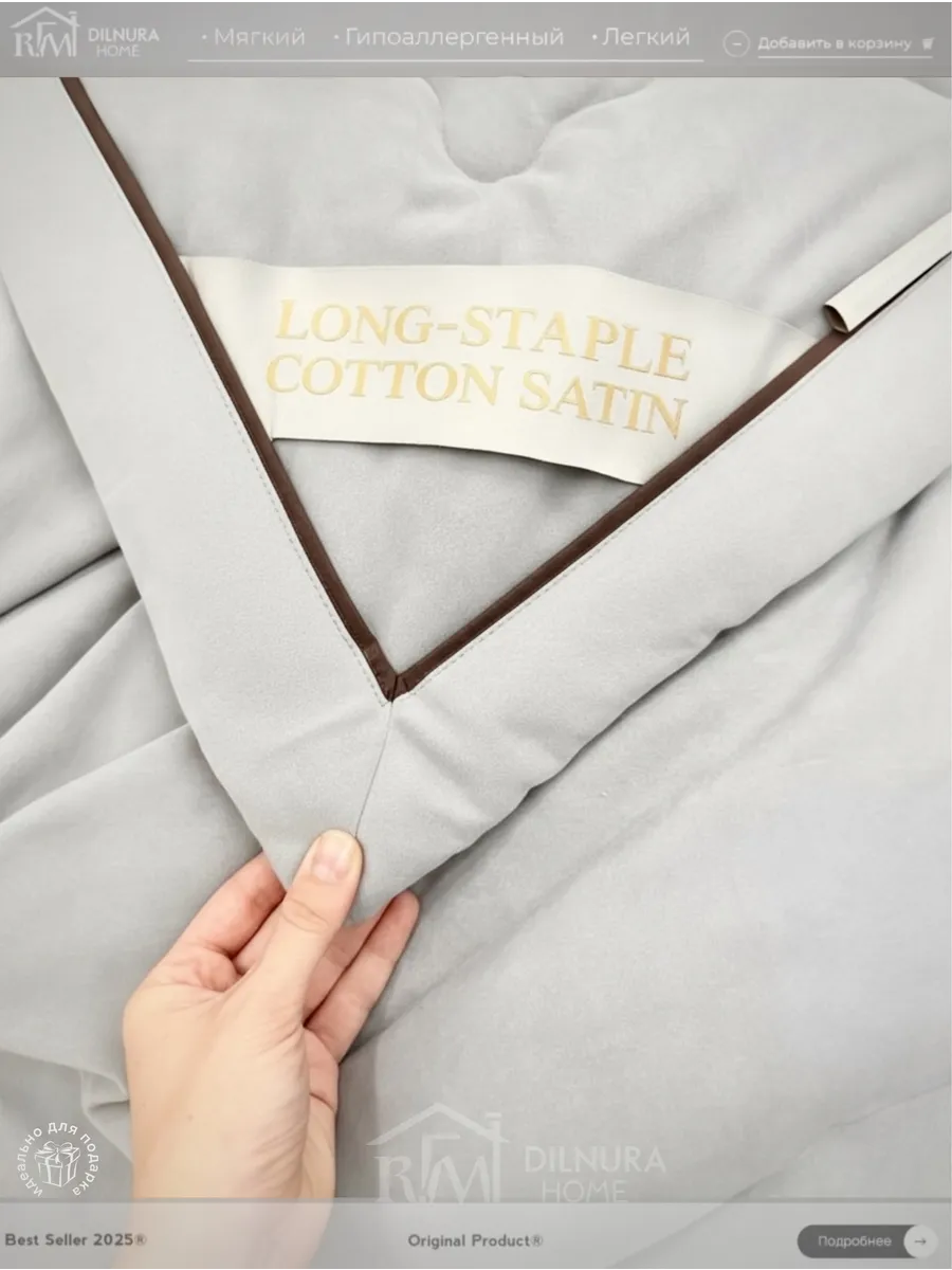 Внутри одеяла — всесезонный наполнитель из 100% шёлка Тусса, который регулирует температуру, хорошо пропускает воздух и отводит влагу. Простёганная структура фиксирует шелк, предотвращает его смещение и обеспечивает равномерный комфорт в течение всей ночи.
