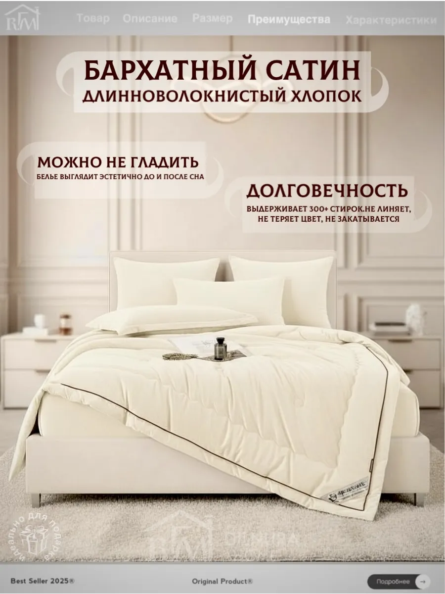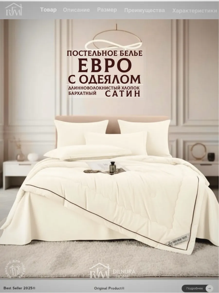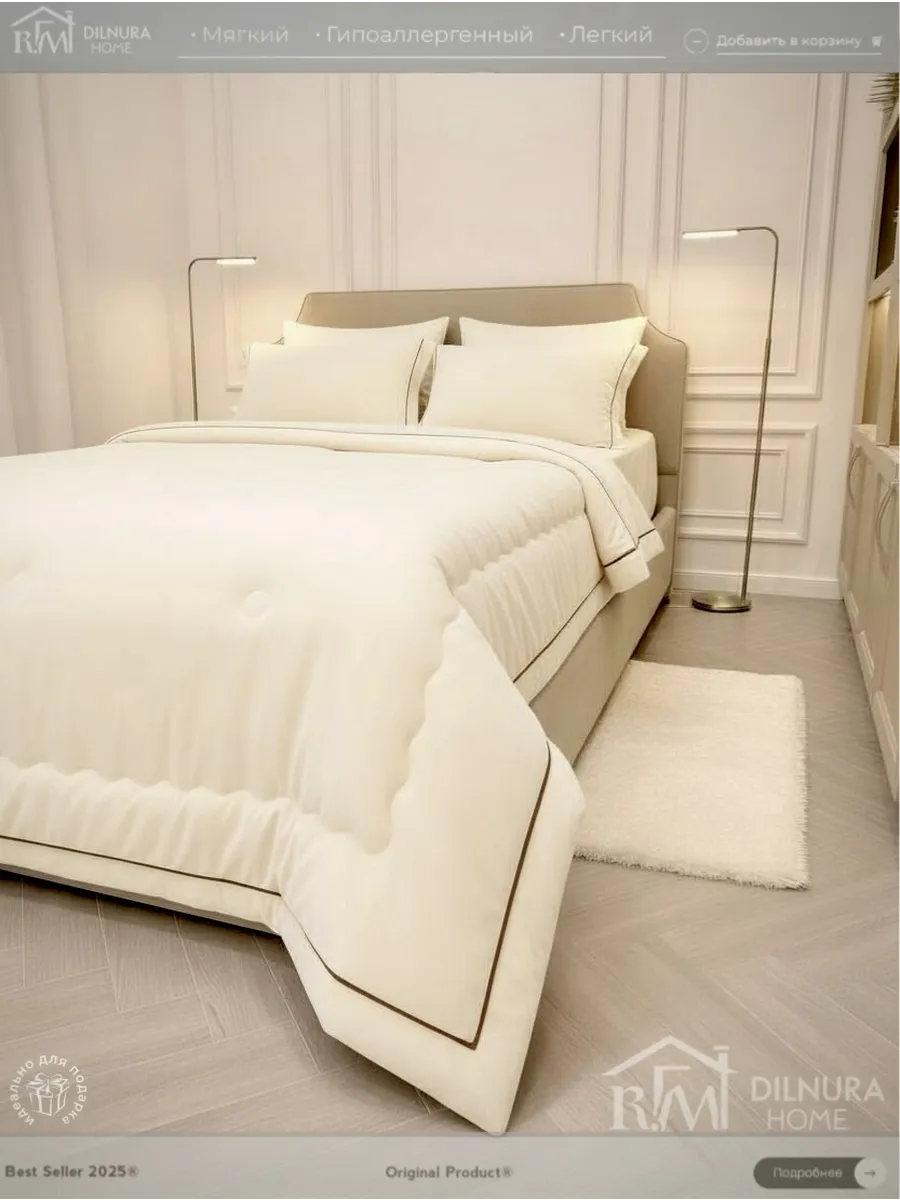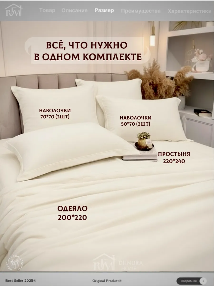 Прочный текстиль не линяет, не требует глажки и надолго сохраняет насыщенность цвета. Комплект идеально подойдёт тем, кто ищет качественное постельное бельё с продуманным наполнением, премиальной текстурой и полноценной комплектацией.