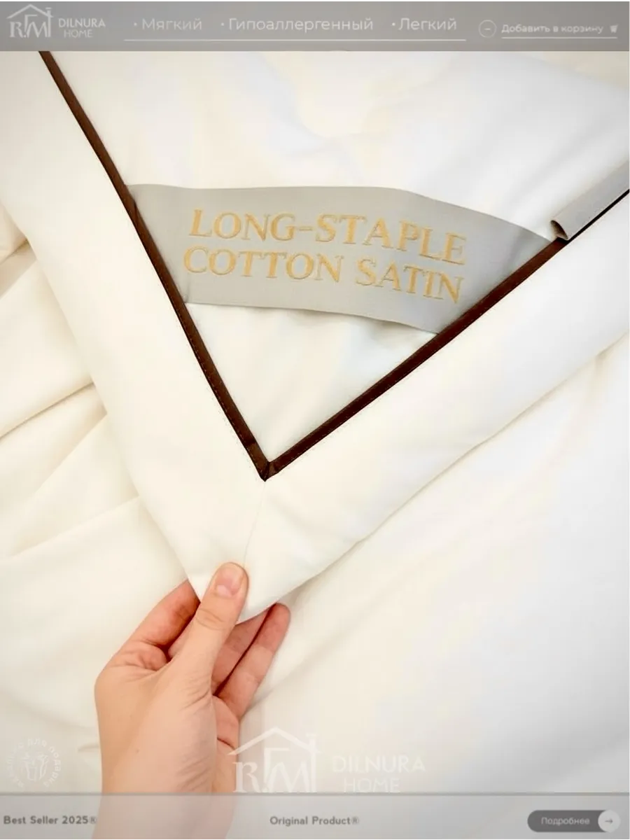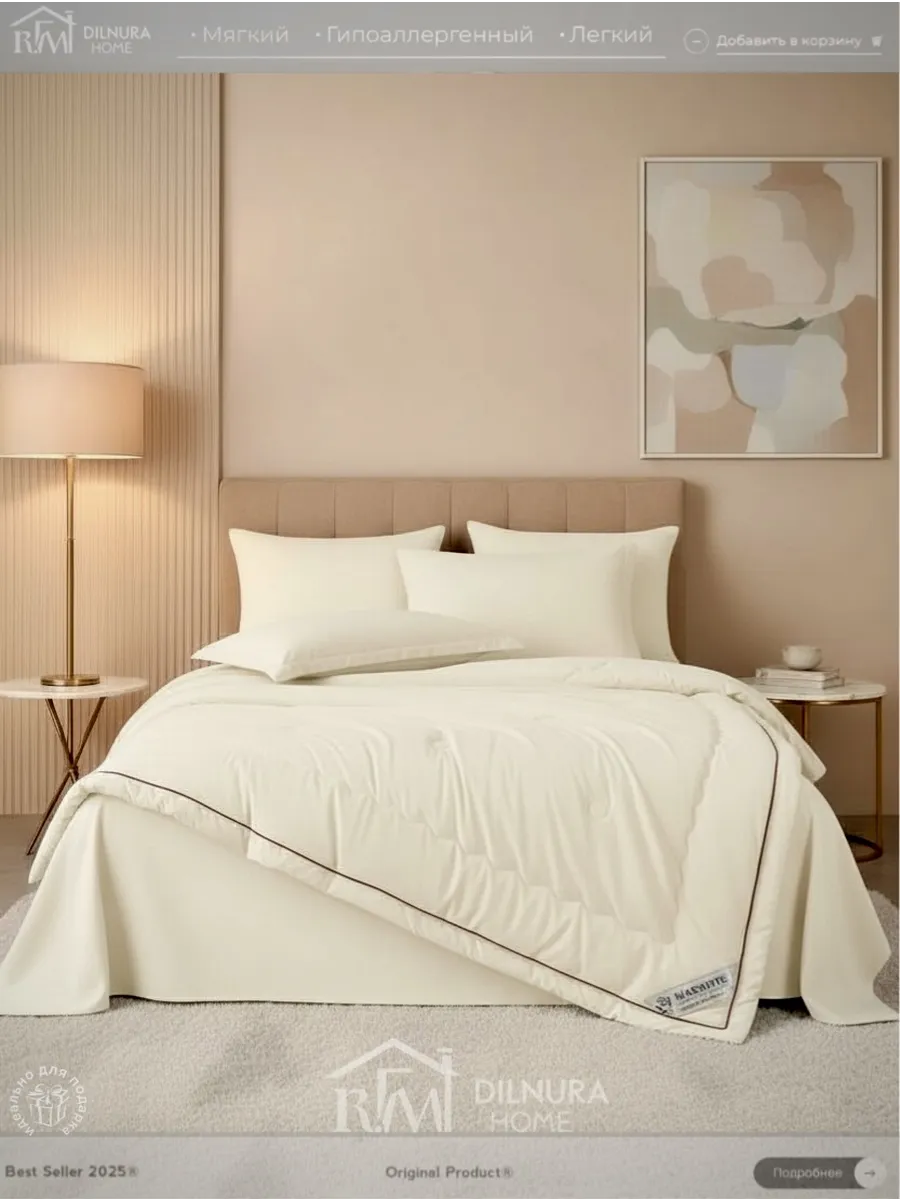 Внутри одеяла — всесезонный наполнитель из 100% шёлка Тусса, который регулирует температуру, хорошо пропускает воздух и отводит влагу. Простёганная структура фиксирует шелк, предотвращает его смещение и обеспечивает равномерный комфорт в течение всей ночи.