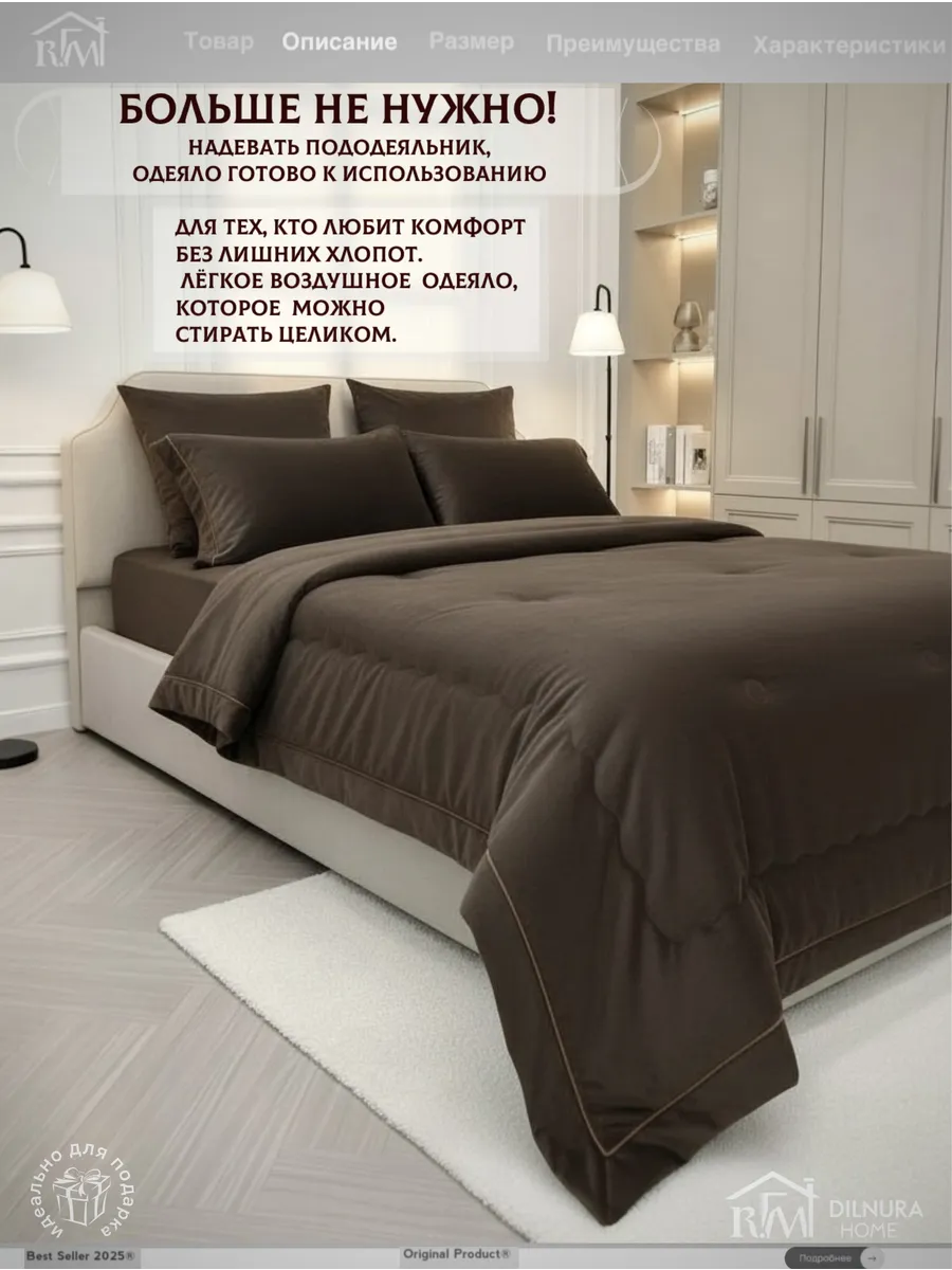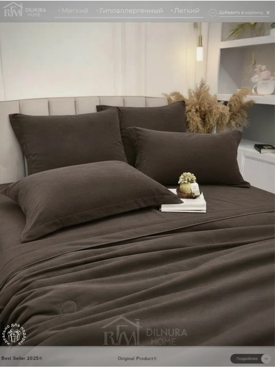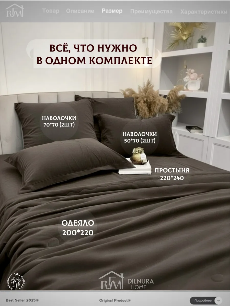Прочный текстиль не линяет, не требует глажки и надолго сохраняет насыщенность цвета. Комплект идеально подойдёт тем, кто ищет качественное постельное бельё с продуманным наполнением, премиальной текстурой и полноценной комплектацией.
