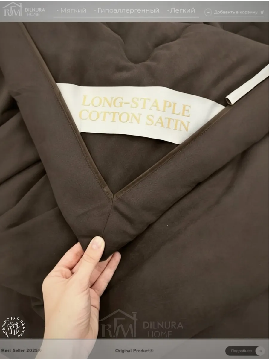 Внутри одеяла — всесезонный наполнитель из 100% шёлка Тусса, который регулирует температуру, хорошо пропускает воздух и отводит влагу. Простёганная структура фиксирует шелк, предотвращает его смещение и обеспечивает равномерный комфорт в течение всей ночи.
