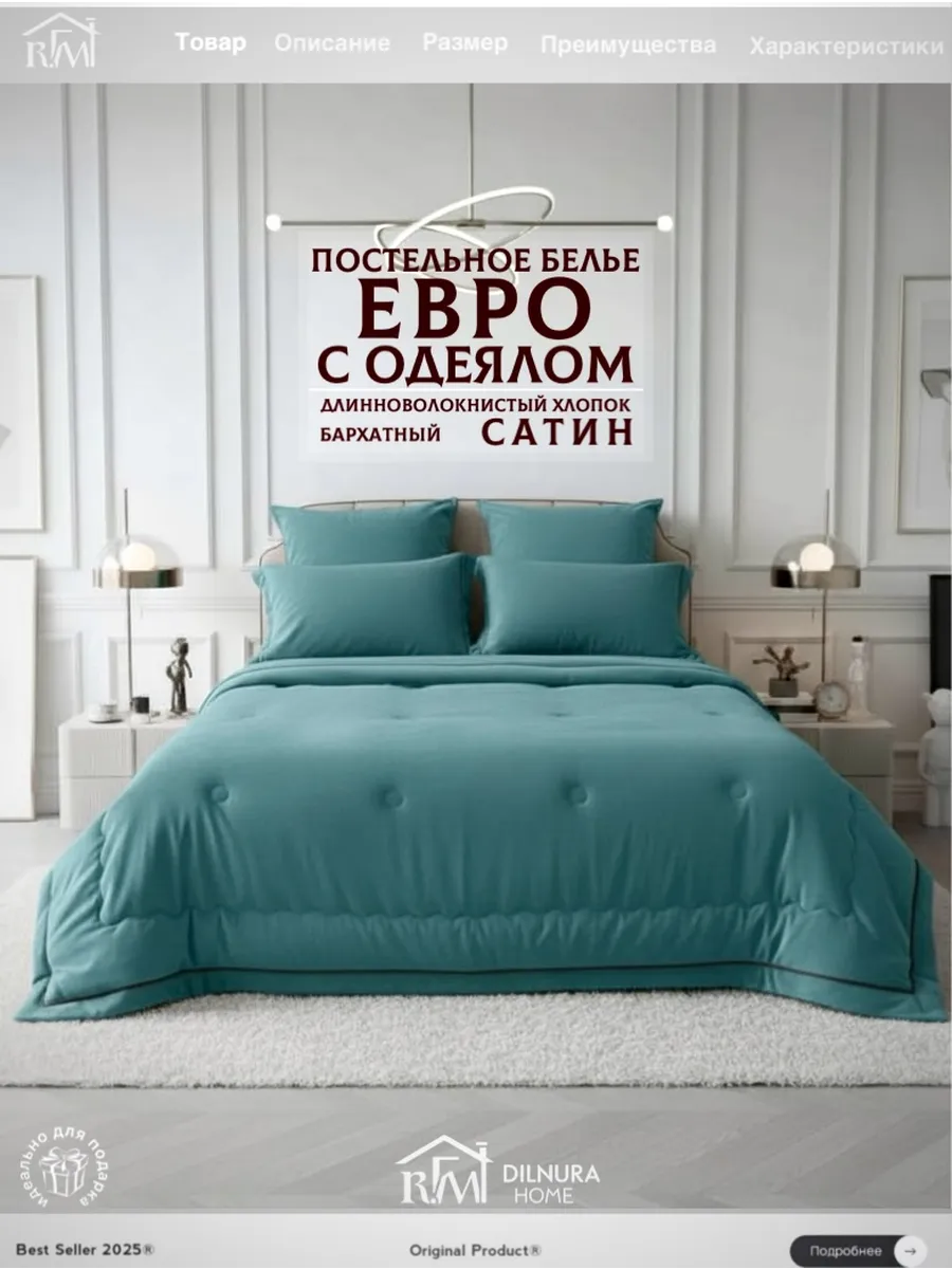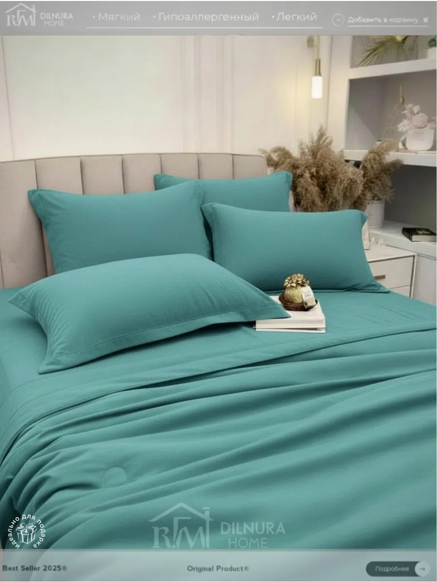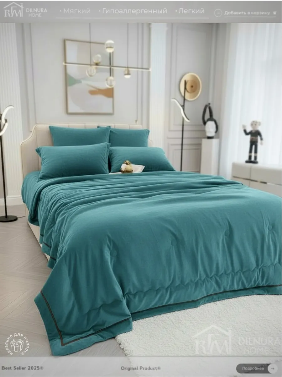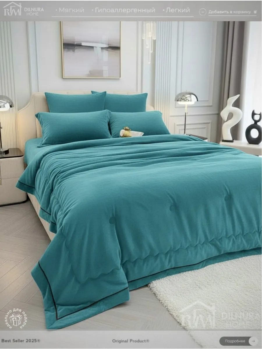 Прочный текстиль не линяет, не требует глажки и надолго сохраняет насыщенность цвета. Комплект идеально подойдёт тем, кто ищет качественное постельное бельё с продуманным наполнением, премиальной текстурой и полноценной комплектацией.