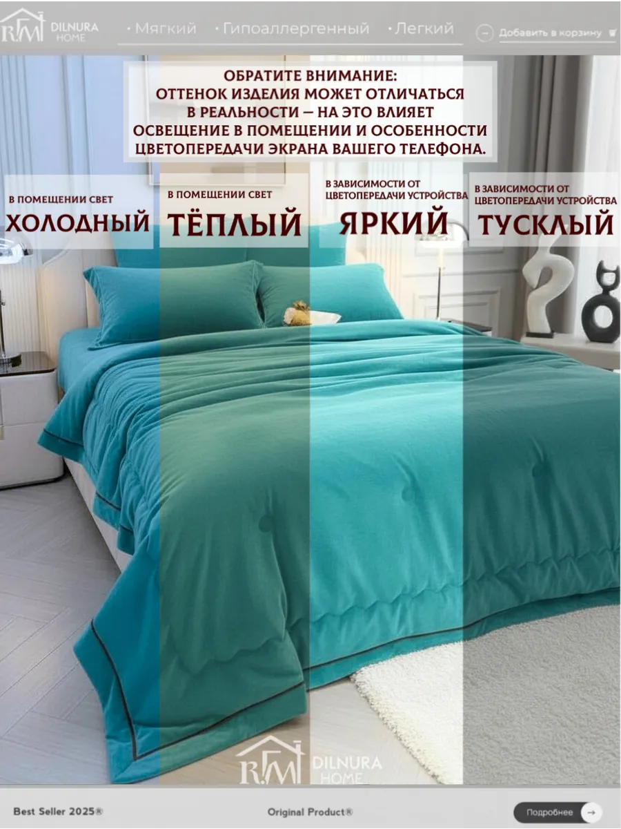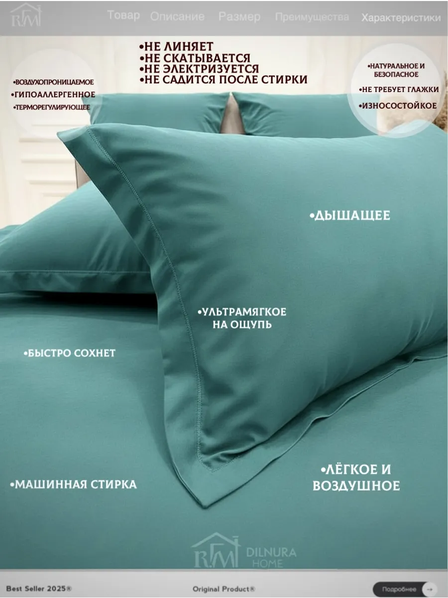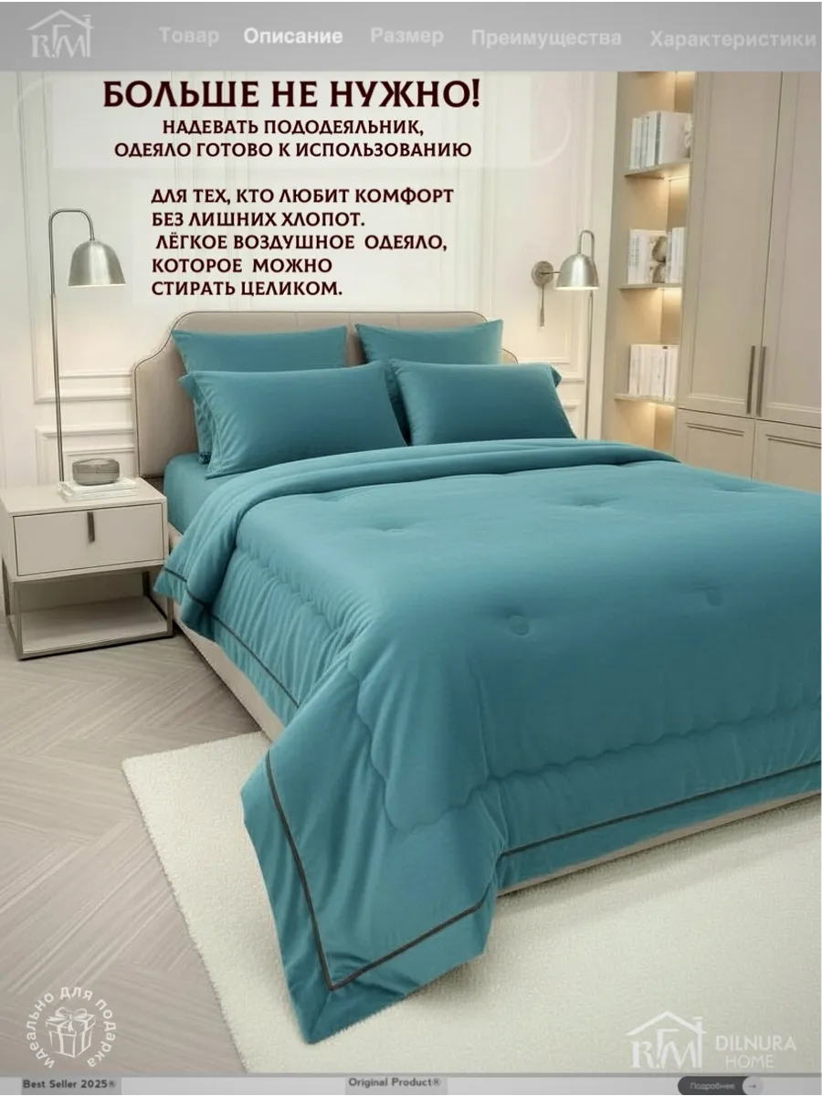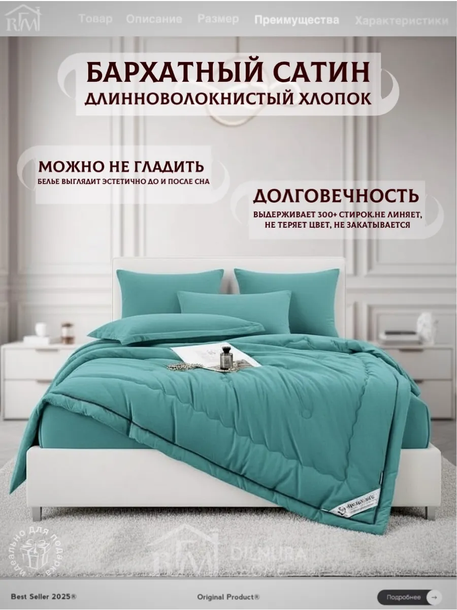 Прочный текстиль не линяет, не требует глажки и надолго сохраняет насыщенность цвета. Комплект идеально подойдёт тем, кто ищет качественное постельное бельё с продуманным наполнением, премиальной текстурой и полноценной комплектацией.